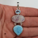 925 Sterling zilveren hanger gezet met regenboog Maansteen, Larimar en blauw Topaas.