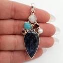 925 Sterling zilveren hanger gezet met Pietersiet, Kunziet, Granaat, Amazoniet en Parel.
